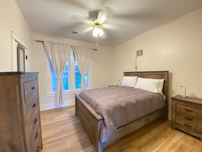 Enjoy the queen sized bed, dresser and full closet in our Master bedroom. Black out curtains will let you sleep till noon if your heart desires.