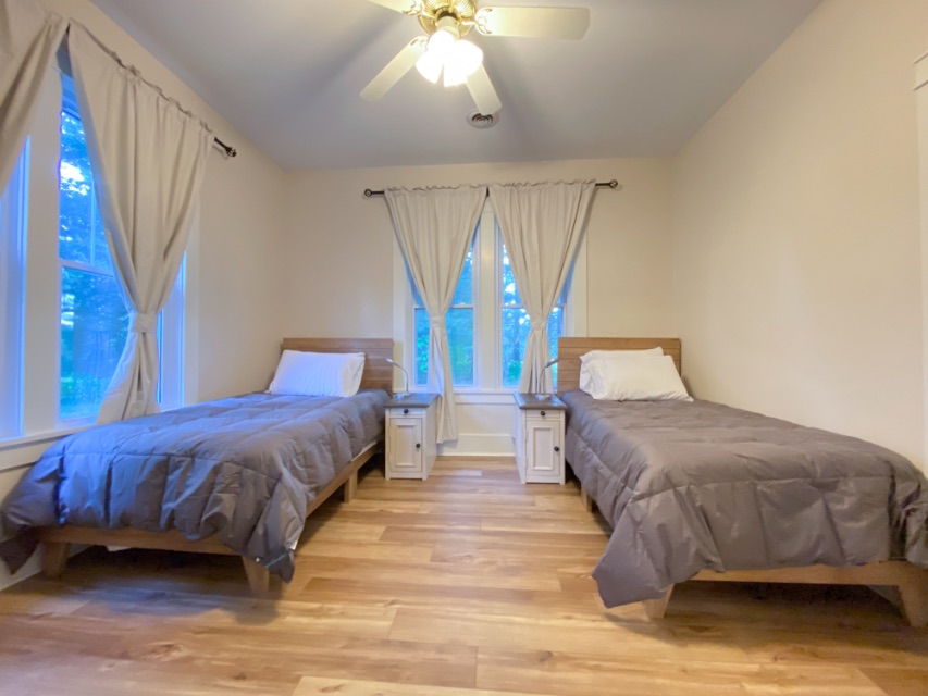 Two twin beds are perfect for friends or siblings! This room also offers a full sized dresser and a full closet.