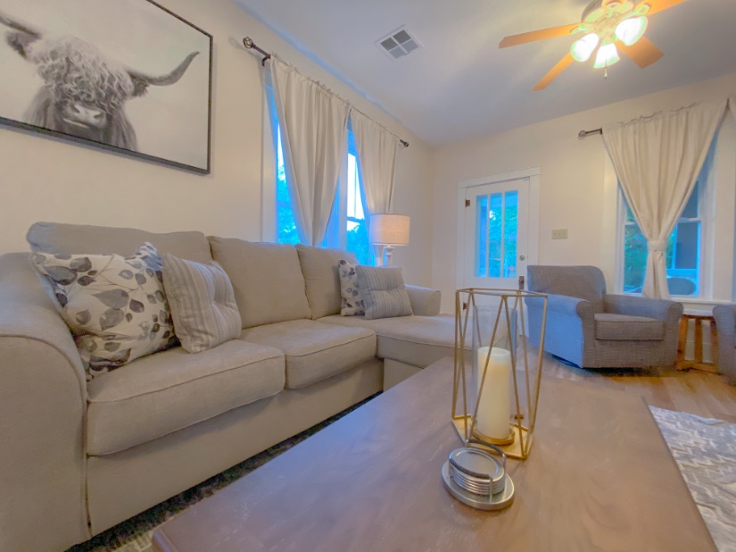Sit outside and enjoy the view from our screened in porch. There’s a table for four so you can even enjoy your meals outdoors if your heart desires.