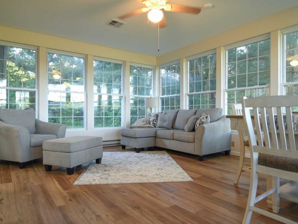 There’s plenty of seating for everyone in this beautifully renovated family room.
